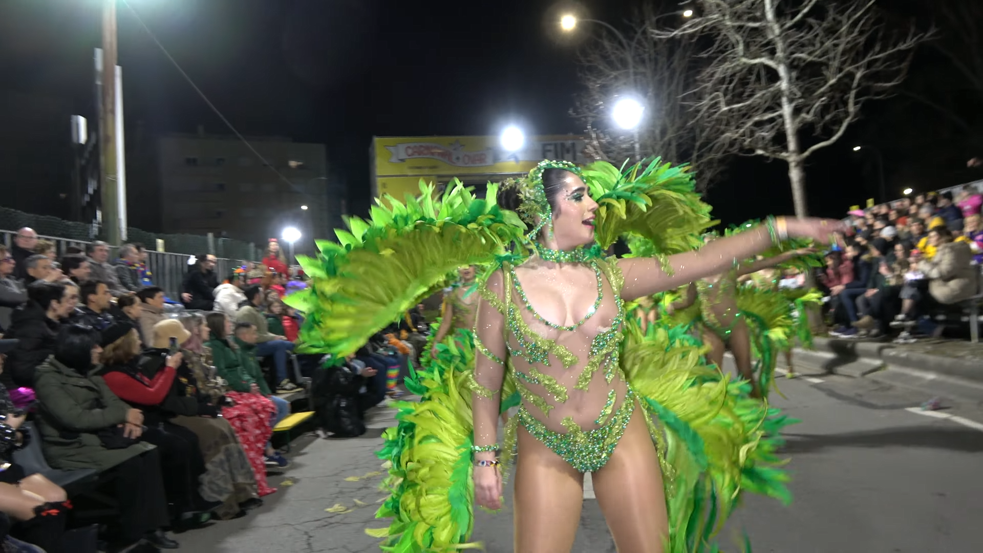 ダンス 【ポルトガル/サンバ】Charanguinha @Desfile Escolas de Samba Carnaval de Ovar 2025 I | 緑衣装のダンサーの透け乳首